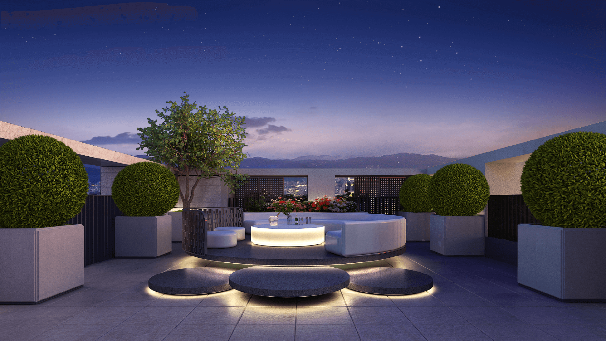 四正面處理,從每個角度都可以仰望這幢建築之美。以綠概念來說可以節能,從居住角度也可以為主人創造大隱於市的私密。